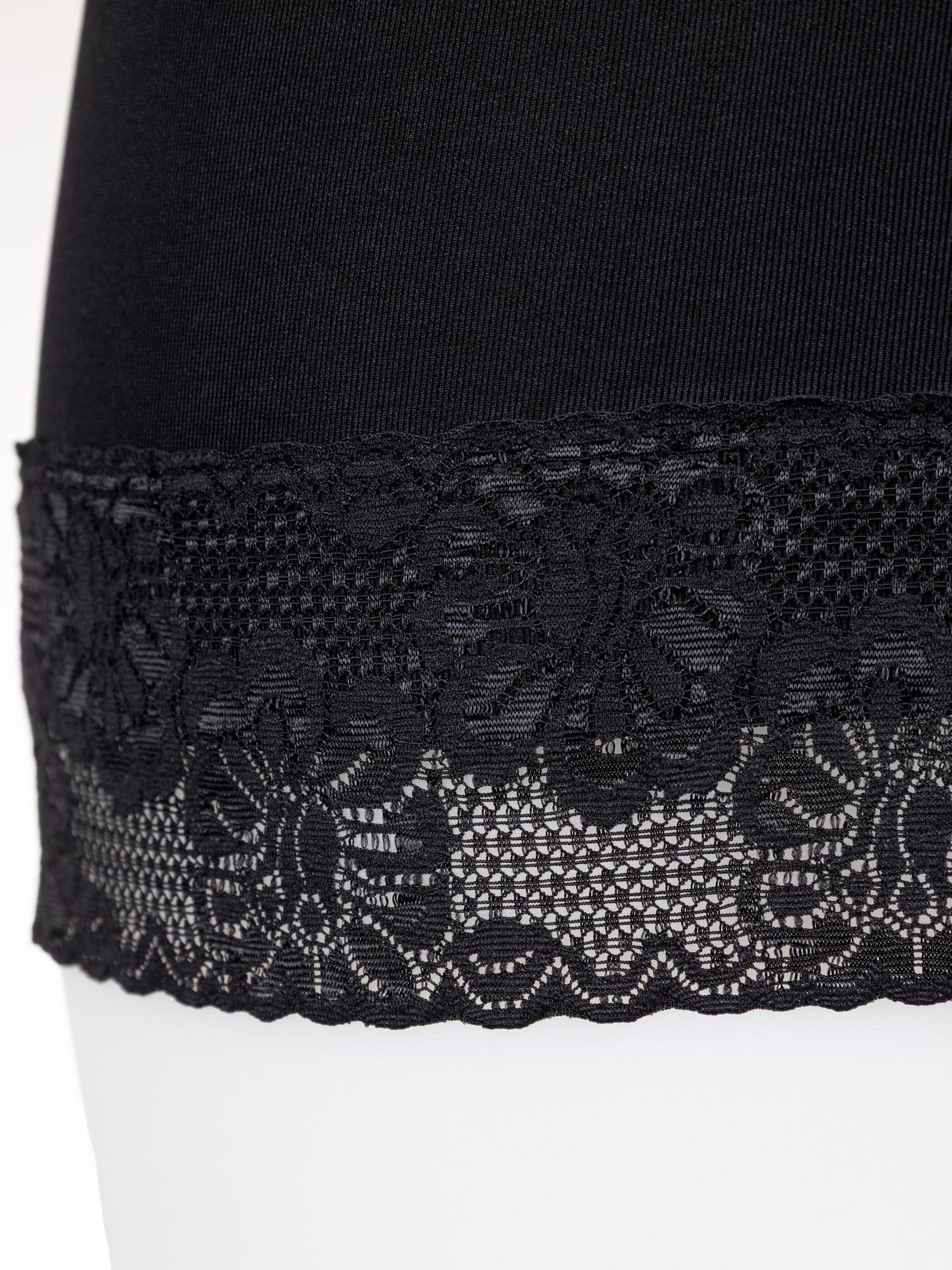 Das figurformende Top aus besonders weichem, glatten Garn mit Push-Up-Zone, R-Ausschnitt und einer modernen Raffung schmeichelt deiner Figur. Es sorgt für einen angenehmen Sitz und sicheren Halt, während der zarte Spitzenbund einen eleganten Akzent setzt.